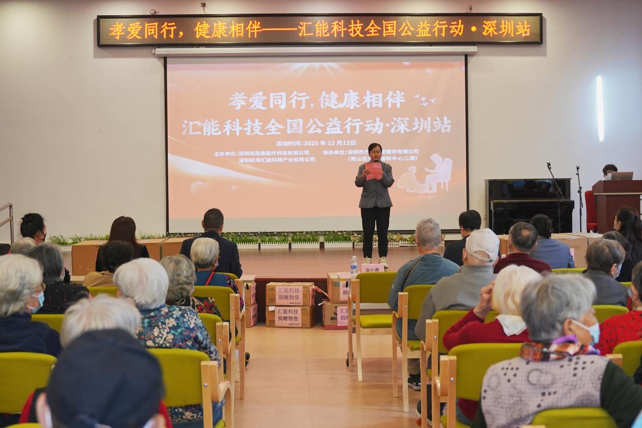 2025年12月12日,深圳市南山区社会福利中心·二期洋溢着温暖与感动。由深圳前海汇能科技产业有限公司与深圳保民康医疗科技公司联合主办的“孝爱同行,健康相伴”全国公益行动在此温情开展。活动以科技助力健康,以行动传递孝心,为长者们送去了冬日的关怀与祝福。