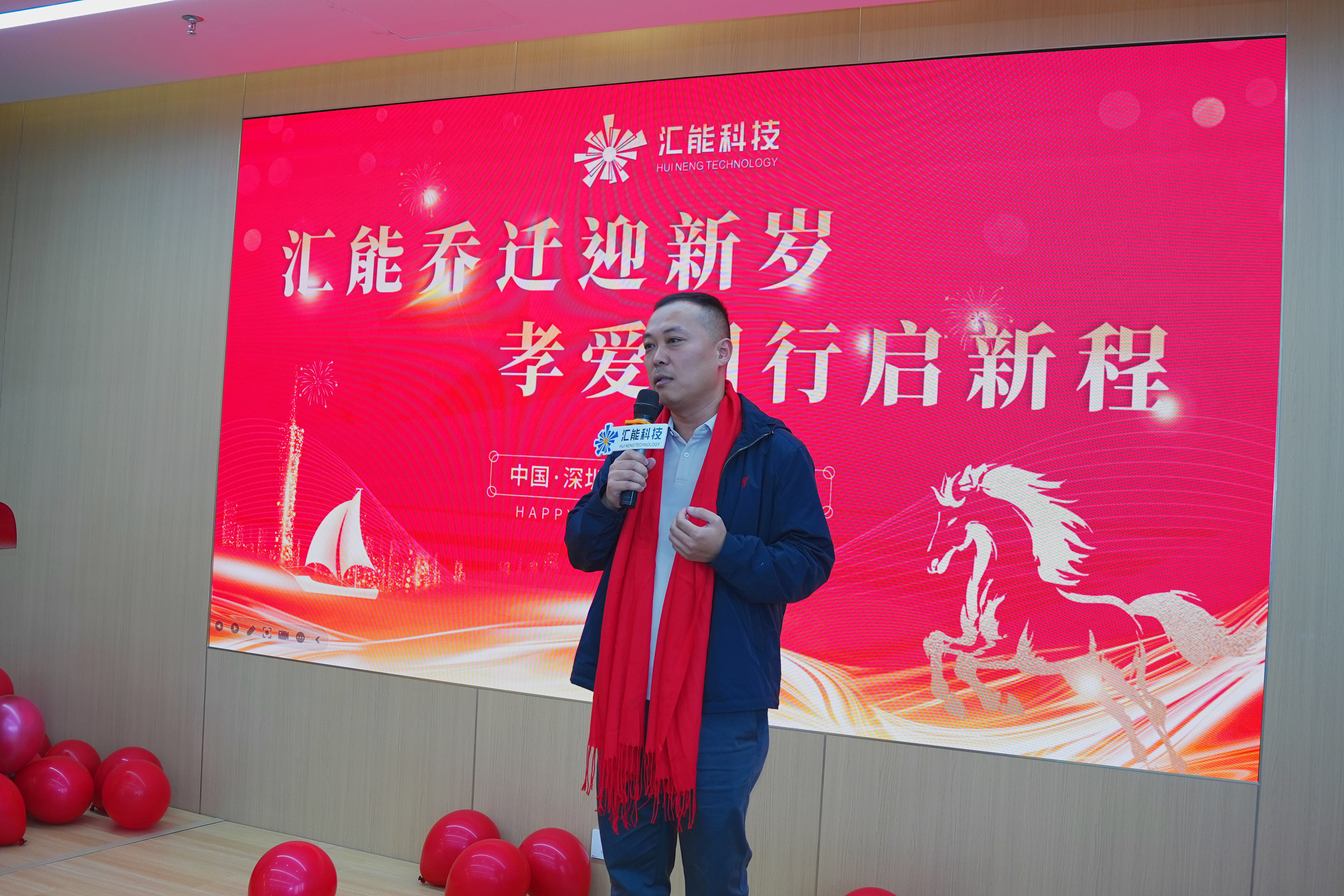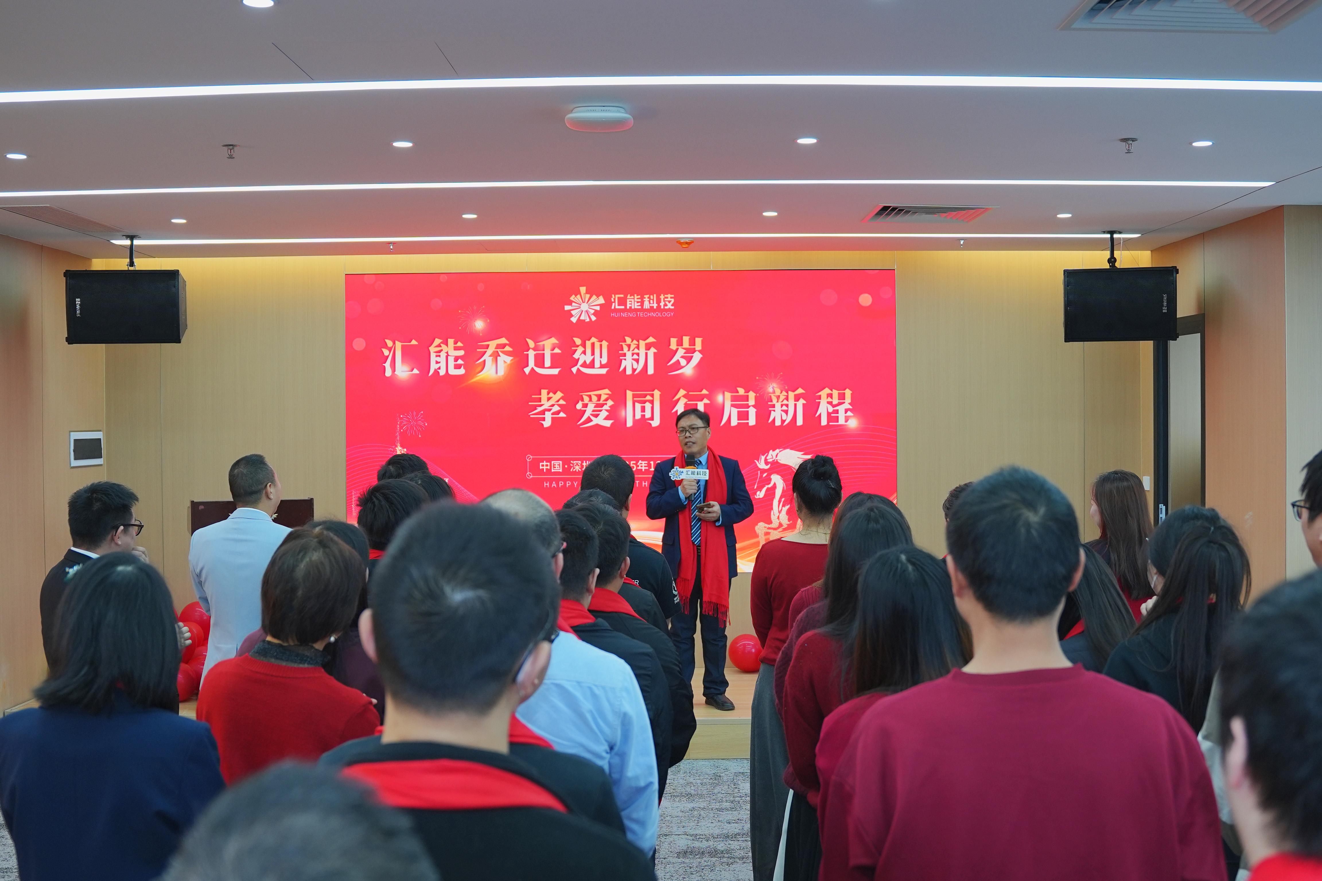 2025年12月31日下午,位于深圳市南山区烯创科技大厦2801的全新办公区内,处处洋溢着喜庆与温馨的氛围。汇能科技在此隆重举办了以“汇能乔迁迎新岁・孝爱同行启新程”为主题的乔迁暨元旦跨年活动。公司创始人兼CEO杨体春带着全体管理层与全体员工欢聚一堂,共同见证公司发展历程中的又一重要里程碑,以满怀希望与激情的方式告别2025,迎接2026年的到来。