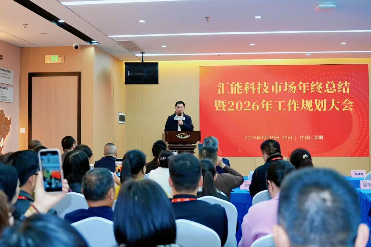 2026年1月19-20日,汇能科技在深圳总部召开年终总结暨新年工作规划会议。公司董事长朱美兴、CEO杨体春、首席顾问兼董事张业军、供应链总监魏燕娜、董事会秘书陈瑜、技术总监、全国服务商代表等核心骨干出席会议。